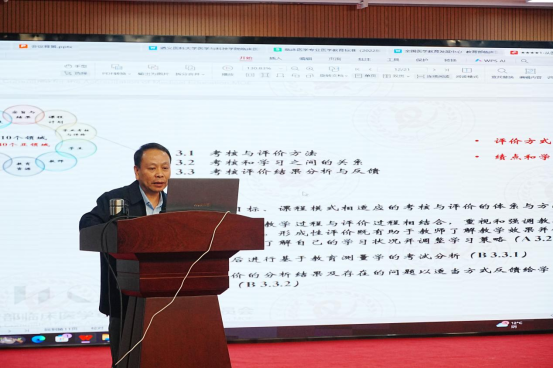 会议伊始,临床学院院长陈双华作专题解读。他从医学教育的理论基础出发,系统阐释了课程体系与教学要求,并聚焦“本科办学基本标准”与“毕业生基本要求”两大核心板块,对临床医学专业认证体系与标准进行了深入剖析,为后续工作开展提供了专业支撑。