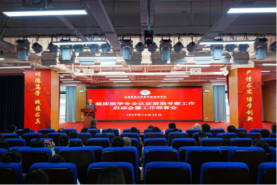 2025年10月20日下午,我校在图书馆报告厅召开临床医学专业认证前期考察工作启动会暨部署会,全面动员和部署认证准备工作。学校校领导、各职能部门主要负责人参加会议。会议围绕“统一思想、明确任务、落实责任”的核心目标,系统传达了上级部门关于临床医学专业认证的政策精神,全面部署了各阶段工作任务,明确了各部门、二级学院的职责分工。
